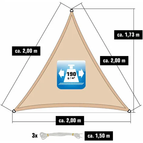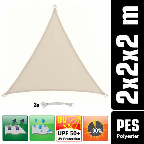 AMANKA 2x2x2 Voile D’Ombrage Triangulaire Étanche – Toile De Jardin Avec Fixation Inox – Beige