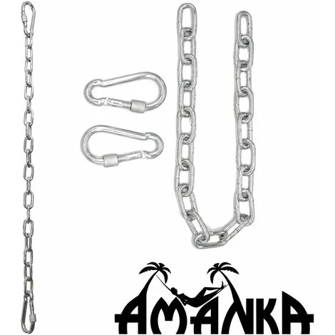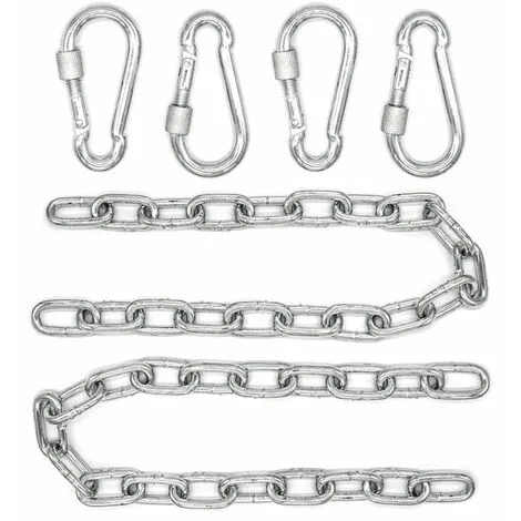 Pour les chaises suspendues, les voiles de soleil et les balançoires : la solide chaîne d’extension assure une hauteur parfaite – les mousquetons à vis pour une prise sûre.
