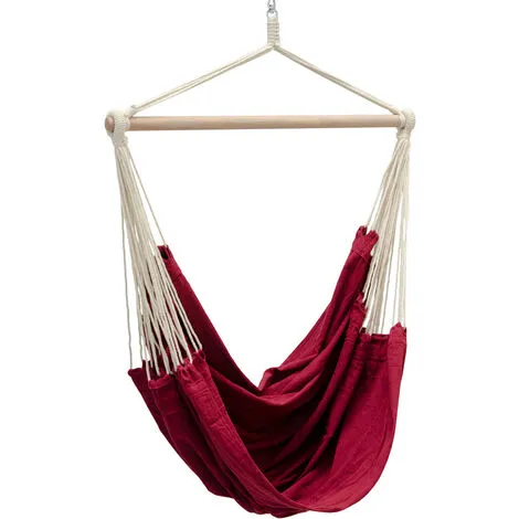L’installation est simple et rapide. Pour accrocher votre hamac, il vous suffit d’une branche d’arbre, un crochet vissée au plafond, un support pour fauteuils-suspendus (vendus séparément, non compris dans la livraison).