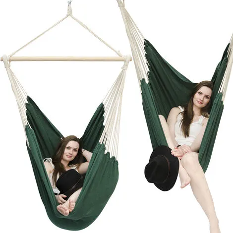 L’installation est simple et rapide. Pour accrocher votre hamac, il vous suffit d’une branche d’arbre, un crochet vissée au plafond, un support pour fauteuils-suspendus (vendus séparément, non compris dans la livraison).