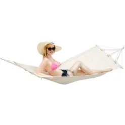 Avec les hamacs triangulaires, il peut arriver que la toile glisse de la barre transversale qui devrait le soutenir.