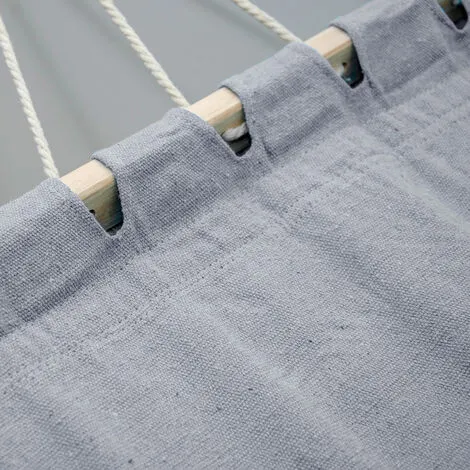 La toile est en tissu de coton de haute qualité et durable, il pèse 320 g/m² ! Les tresses tressées à la main rendent le hamac encore plus robuste.