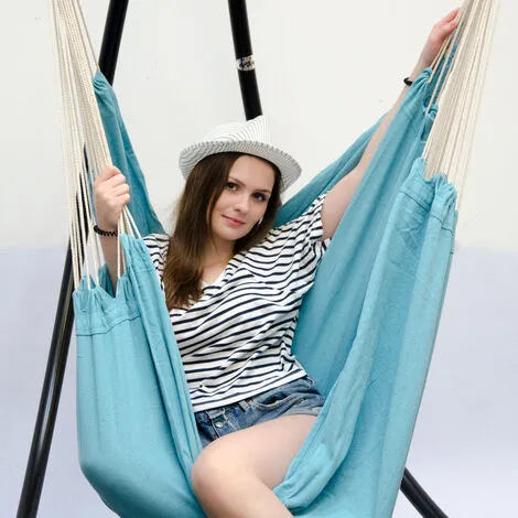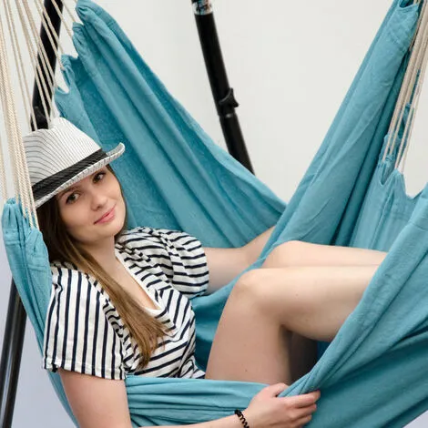 Le pivot est en métal très robuste, il assure une rotation en sécurité, utile pour s´installer toujours dans la bonne position et pour vous protèger contre les mouvements brusques (par ex. due à des enfants très actives). L’installation est simple et rapide. Pour garder votre hamac accroché, il vous suffit la branche d’un arbre, un crochet vissée au plafond, un support pour fauteuils-suspendus (PAS INCLUS DANS CETTE OFFRE).