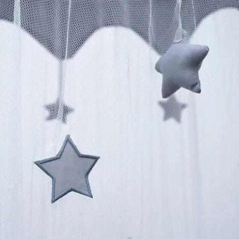 – Coupole grise, broderies et suspensions étoiles en coton mélangé. Joli décor idéal pour chambre de bébé, tente de lit ou fauteuil princesse.