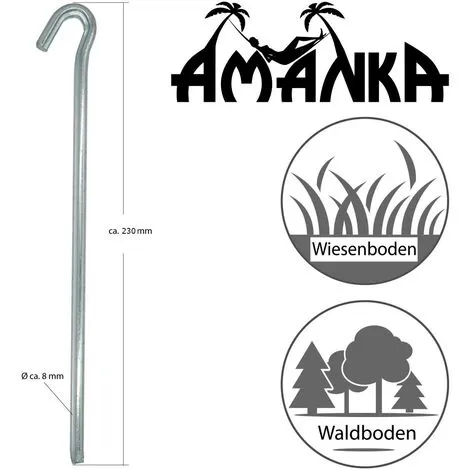 Nos piquets ont une longueur de 23cm, grâce à la forme fine et triangulaire, ils sont parfaits pour fixer votre tente tant dans les sols durs (argileux, pierreux, glacés) que dans les prés et les pelouses – à savoir, le terrains typiques où on fait normalement du camping!