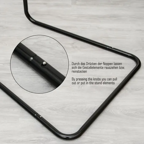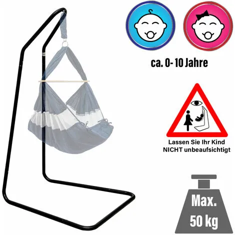 Le soutien pour accrocher des chaises suspendues pour bébés est de couleur noir, avec un design simple, facile à combiner avec tout style, il deviendra sans aucun doute partie intégrante du décor de votre maison. Il prend très peu d’espace et il est facile à déplacer (dimension 100x80cm).