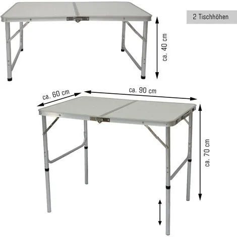 – Table pliante montée (Lxlxh): env. 90x60x40-70 cm