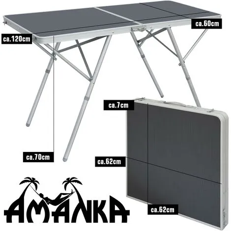 Table de camping de AMANKA 120x60x70cm, en aluminium solide et durable!