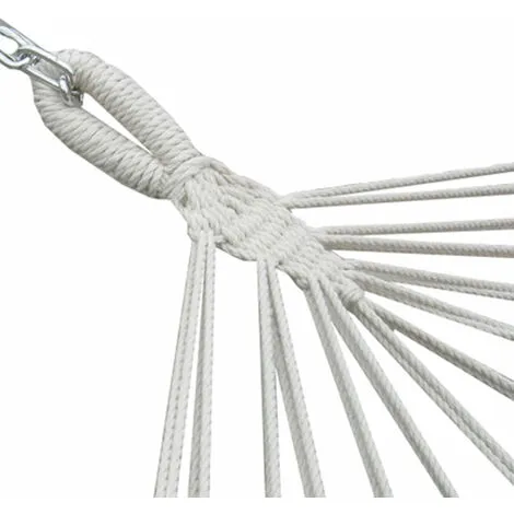 La toile est en tissu de coton de haute qualité et durable, il pèse 320 g/m² ! Les tresses tressées à la main rendent le hamac encore plus robuste.