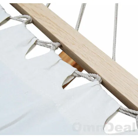Les tiges en bois aux deux bouts maintiennent la toile bien ouverte, de sorte qu’il est très facile de s’allonger et de se lever.