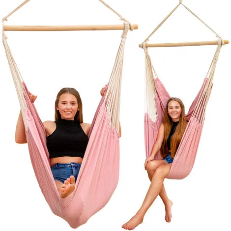 Extrêmement sûr grâce à la barre en bois massif avec surface antidérapante. La barre est amovible, ainsi vous pouvez laver aisément le hamac dans la machine à laver à 30°C.