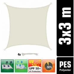 AMANKA 3×3 Voile D’Ombrage Carrée Respirante – Toile De Jardin Avec Fixation Acier Inox – Beige