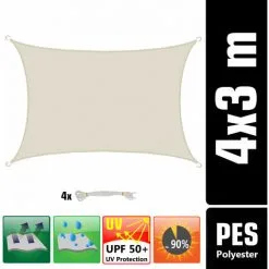 AMANKA 3×4 Voile D’Ombrage Rectangulaire Étanche – Toile De Jardin Avec Fixation Inox – Beige