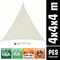 AMANKA 4x4x4 Voile D’Ombrage Triangulaire Étanche – Toile De Jardin Avec Fixation Inox – Beige
