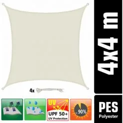 AMANKA 4×4 Voile D’Ombrage Carrée Étanche – Toile De Jardin Avec Fixation En Acier Inox – Beige