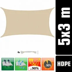 AMANKA 3×5 Voile D’Ombrage Rectangulaire Respirante – Toile De Jardin UV Avec Fixation – Beige