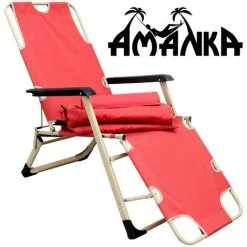 AMANKA Chaise Longue Transat 178cm Pliant Incl Appuie-tête Et Coussin Amovibles Rouge – Rot