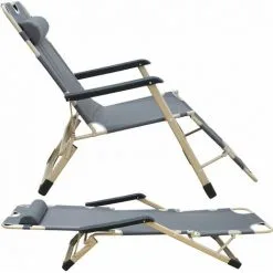 AMANKA Kopie Von Campingstuhl Liegestuhl AMA-YU-98 XL Grau 178x65x88 Cm Incl. Auflage – Grau