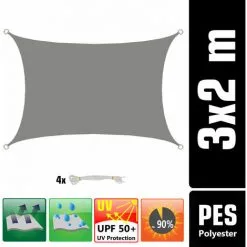 AMANKA UPF50+ Voile D’ombrage UV 2×3 M Polyester Rectangle Protection Hydrofuge Gris – Grau