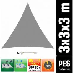 AMANKA UPF50+ Voile D’ombrage UV 3x3x3 Polyester Triangle Protection Hydrofuge Gris – Grau